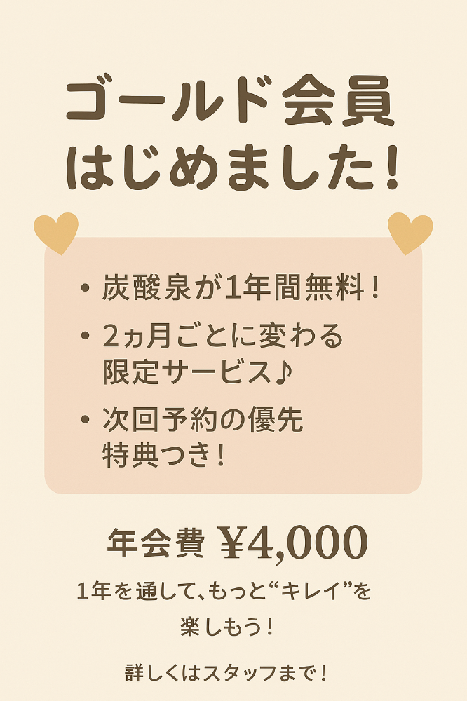 ※ゴールド会員になると1年間施術時の炭酸泉が無料になります!